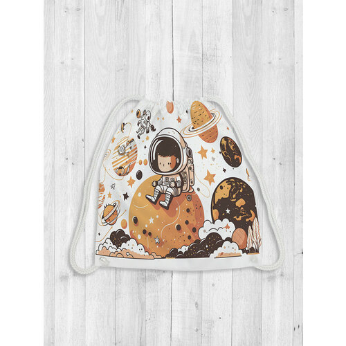 Сумка рюкзак-мешок для обуви и вещей с принтом "Маленький космонавт", JoyArty, 38x40см