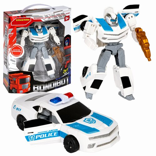 Трансформер 2в1 BONDIBOT Bondibon робот-автомобиль, белая полиция, BOX 20,5x24,5х9 см, арт. M7412-17