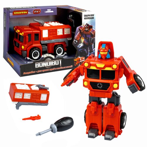 Трансформер-конструктор с отвёрткой, 2в1 BONDIBOT Bondibon, пожарная машина-робот, ВОХ 21х10х13,5 см