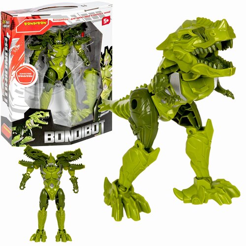 Трансформер 2в1 BONDIBOT Bondibon робот-динозавр, зелёный тираннозавр 5x24,5х9 см, арт. M741