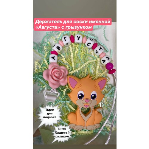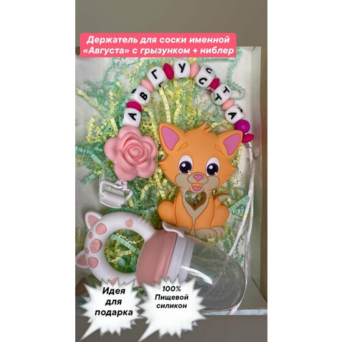 "Августа" держатель для соски с грызунком+ ниблер (котик)