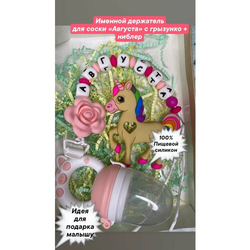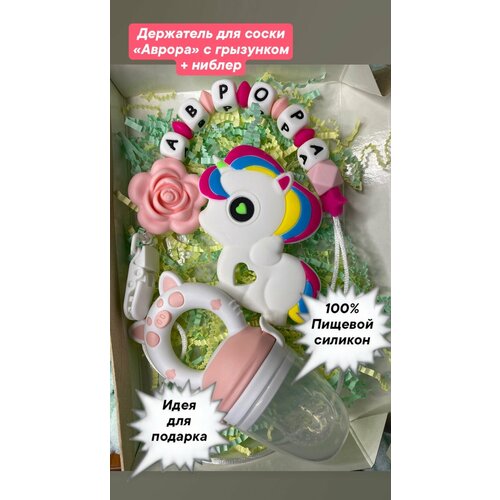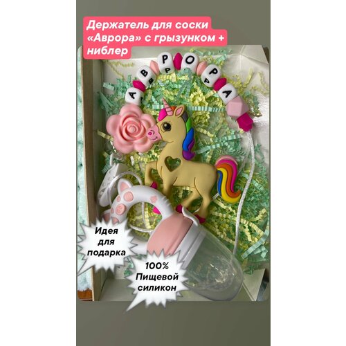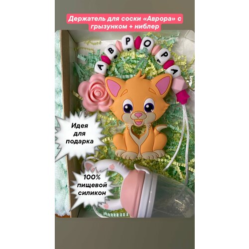 "Аврора" держатель дл соски именной с грызунком + ниблер