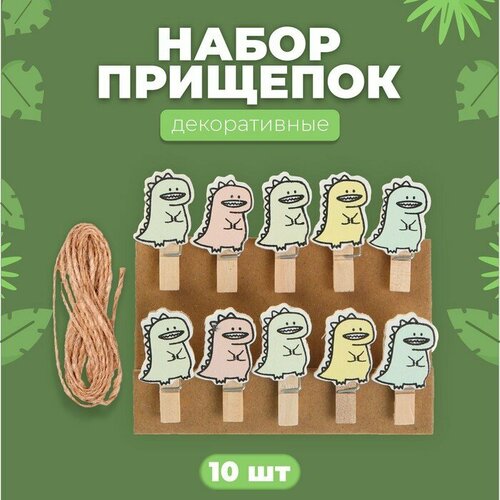 Прищепки декоративные с верёвкой для подвеса «Дракоши» набор 10 шт, 1,5 × 12 × 14 см