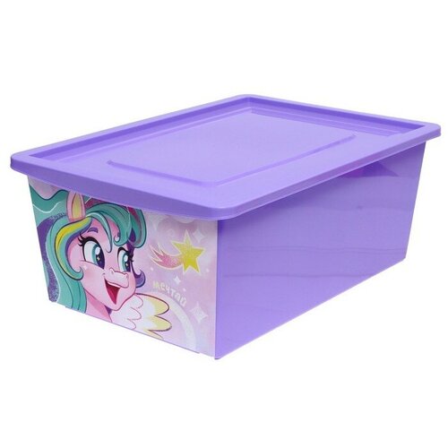 Ящик для игрушек с крышкой, «Радужные единорожки», объём 30 л, цвет сиреневый