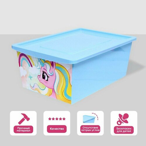 Ящик для игрушек Соломон с крышкой, "Радужные единорожки", объем 30 л, цвет светло-голубой