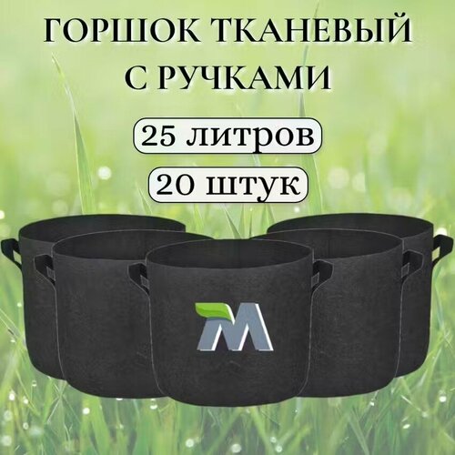 Горшок тканевый с ручками для растений и цветов. Мешок из флиса 25л, 20шт