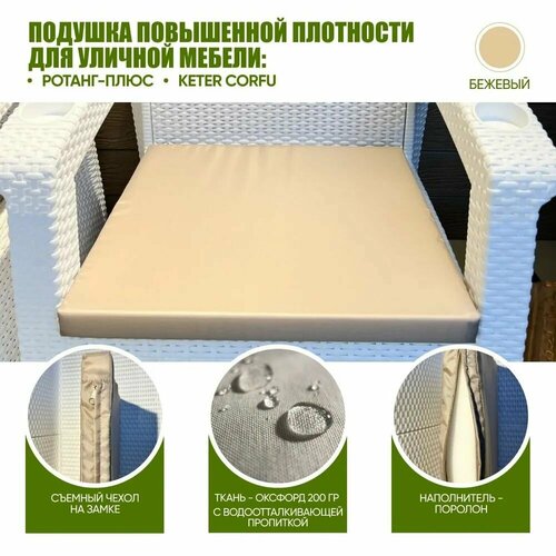 Подушка для садового кресла повышенной плотности, бежевая