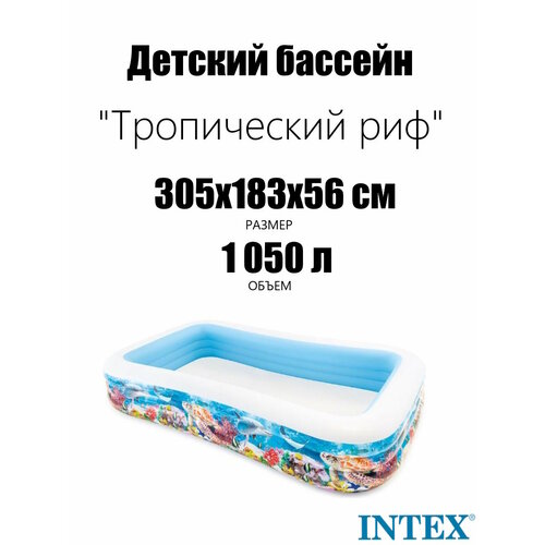 Детский надувной бассейн 305х183х56см "Тропический риф" 1050л, от 6 лет