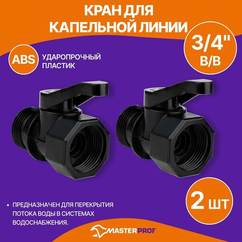 Кран для капельной линии внешняя и внутренняя резьба 3/4, пластик, 2 шт.