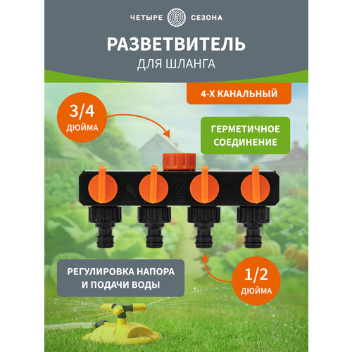 Разветвитель шланга Четыре Сезона, пластик, 4 канала, 3/4"-1/2", черный