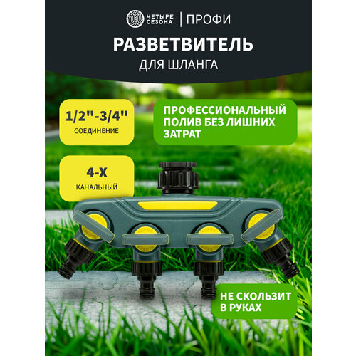 Разветвитель 4-канальный на кран 1/2"-3/4" Профи четыре сезона