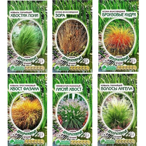 Набор Декоративные злаки (Ковыль; Осока; Пиннисетум), 6 пакетов, семена ЕвроСемена