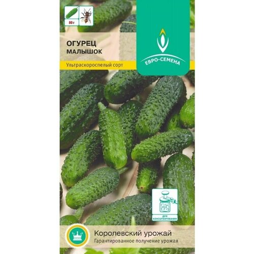 Огурец Малышок. Семена. Ультраскороспелый сорт для открытого грунта. Растение кустовой формы. Зеленцы длиной 8-9 см, массой 80-90 гр, без горечи