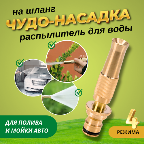 Насадка на шланг для полива латунная 1/2" и 3/4" / Распылитель для полива / Насадка для мойки авто