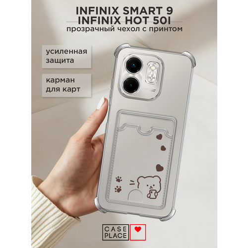 Чехол на Infinix Smart 9/Hot 50i (Инфиникс Смарт 9/Хот 50i) с картой и принтом Мишка и сердечки