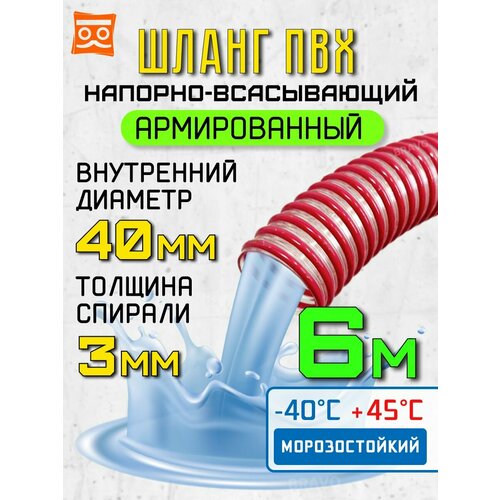 Напорно-всасывающий шланг для перекачки 40 мм (6 метров), Морозостойкий, Армированный ПВХ шланг для насосов