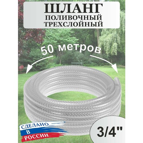 Шланг поливочный ПВХ Силикон армированный / 3-х слойный / прозрачный 3/4" 50м