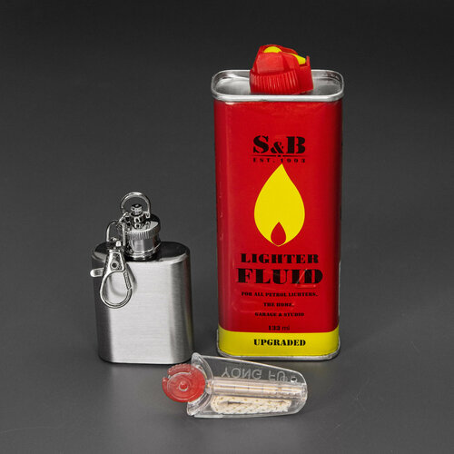 ЗИП набор-заправка для зажигалки: канистра стальная (30 мл), Lighter fluid (133 мл), фитиль (10 см) и кремний (7 шт)