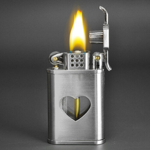 Сверхдолгая автоматическая металлическая бензиновая зажигалка с резервуаром для топлива в виде сердца, цвет серебро