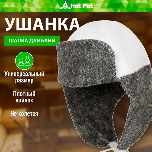 Шапка для бани и сауны "Ушанка" "Hot Pot", войлок