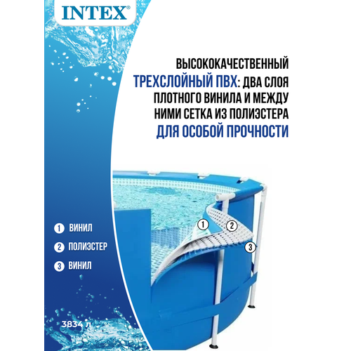 При производстве используется технология Super-Touch (сочетание винила с полиэстером), наделяющая материал тройной прочностью, устойчивостью к ударам, воздействию солнечных лучей, растягиванию и стиранию. По всему периметру бассейн опоясывает полипропиленовая лента, повышающая устойчивость и максимальную прочность. Бассейн просто собирается и разбирается, для его хранения не потребуется много места.