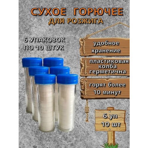 Сухое горючее в колбе для розжига IMAGE 10 таблеток, 6 упаковок