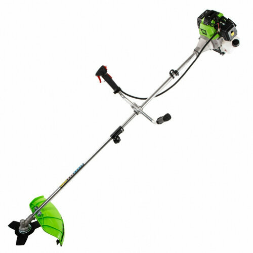 пластикБензиновый триммер Сибртех КС-1800Р 962525 с разъемной штангой, поставляющийся комплектом из 2 частей, имеет двигатель объемом 33 куб. см и мощностью 1,8 л.с., благодаря чему успешно справляется с подравниванием газона, скашиванием травы на лужайке и уничтожением сорняков. Выполнение этих задач облегчают режущие элементы — катушка с леской и трехлопастный нож. Леской триммер скашивает 42 см за один проход, а ножом — 25,5 см, поэтому можно за короткое время привести дачный участок в порядок. Благодаря разборной штанге мотокоса не занимает много места во время хранения и транспортировки.