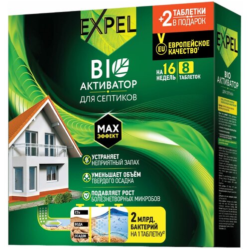 Биоактиватор для септиков и автономных систем Expel, 8 таблеток (+2 таблетки в подарок)