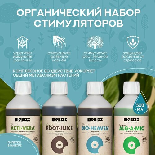 Органический набор удобрений BioBizz Root-Juice, Acti-Vera, Alg-a-Mic, Bio-Heaven 0.5 л.