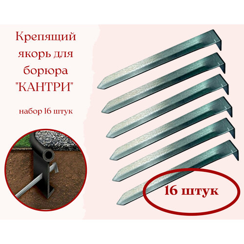 Крепящий якорь к садовому бордюру "Кантри", Оцинкованная сталь, 16 штук