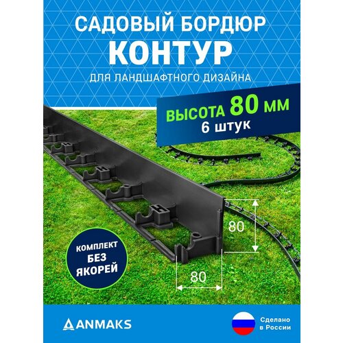 Садовый бордюр "Контур", 6 метров, 6 шт по 1 м высота 8 см для создания ландшафтного дизайна, садовых дорожек, благоустройства садовых участков