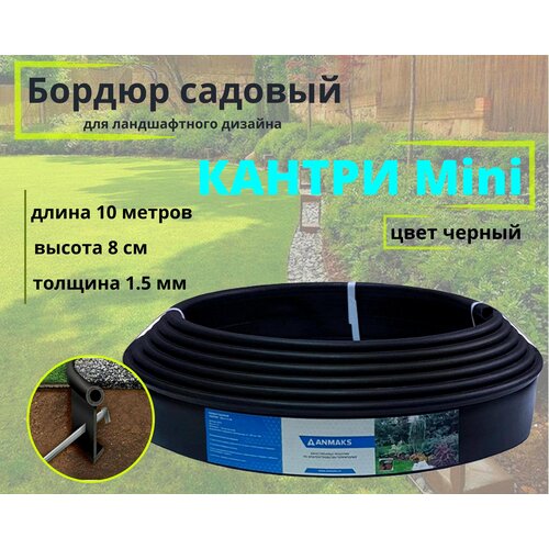 Бордюр садовый "Кантри mini" 8 см х 10 м, толщина 1,5 мм, пластиковый бордюр для создания ландшафтного дизайна, бордюр для сада