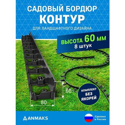 Пластиковый садовый бордюр ANMAKS (Экобордюр Контур), длина 1000 мм, высота 60 мм, 4 штуки, арт. 7260