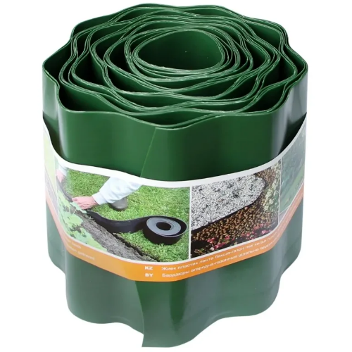 Лента бордюрная садовая 15 см, длина рулона 10 м, толщина 2-2,5 мм.