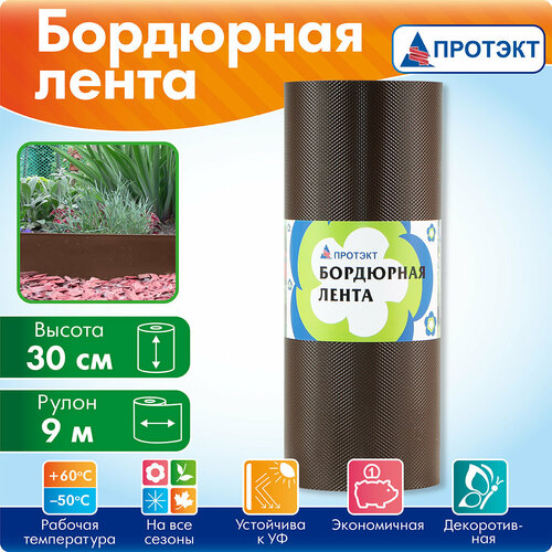 Лента садовая бордюрная 30 см * 9 м, Протэкт, коричневая