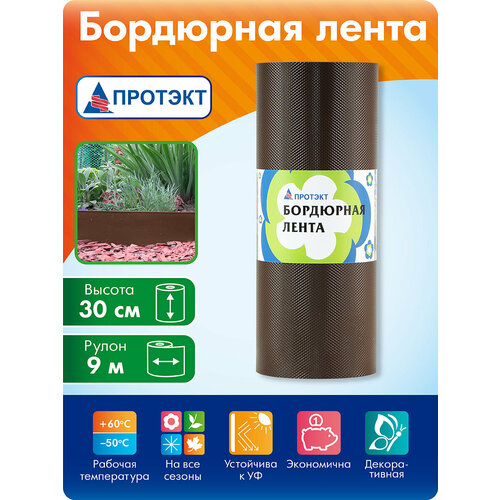 Бордюрная лента для сада и клумб 30 см, 9 м, коричневая, высота 30 см