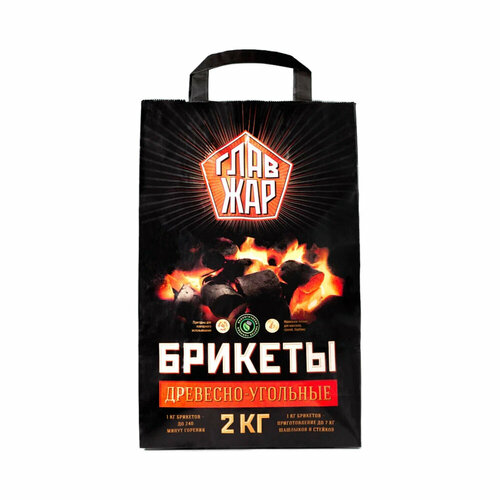 Брикеты "ГлавЖар" древесно-угольные для гриля, шашлыка и барбекю, 2 кг