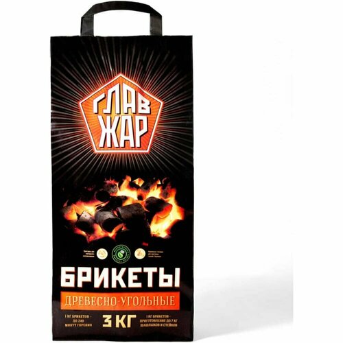 Брикеты «ГлавЖар» древесно-угольные для гриля, шашлыка и барбекю, 3 кг