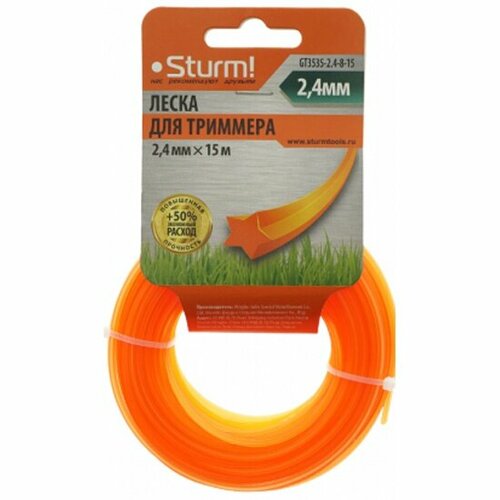 Леска для триммеров STURM! d=2.4 мм, l=15 м, звезда, оранж, картон