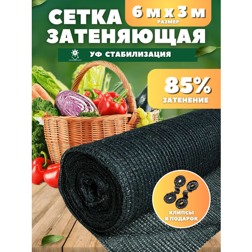 Сетка затеняющая зеленая, затенение 85%, размер 6х3м клипсы в комплекте