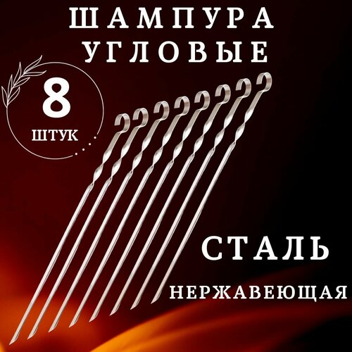 Шампуры для шашлыка, мяса, овощей 45см, набор шампуров, 8шт, угловые из нержавеющей стали