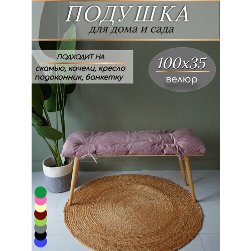 Подушка на скамью, подоконник 100х35 см, KLV_Shop велюр, цвет розовый.