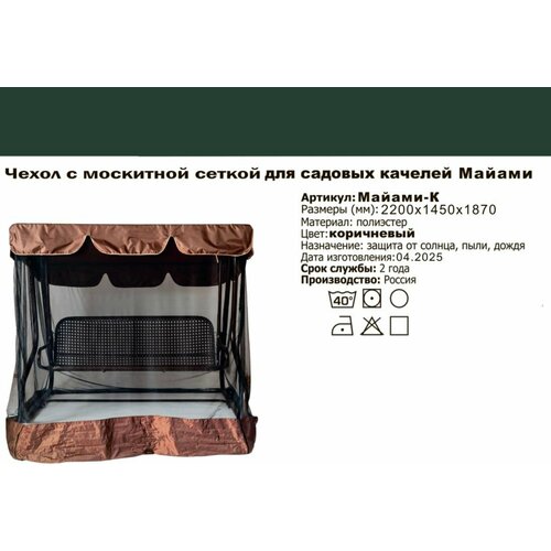 Тент с москитной сеткой для садовых качелей Майами, 2200х1450х1870 мм, Коричневый, KALYMERA