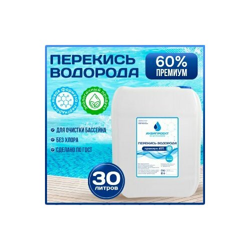 Перекись водорода для бассейна 60%, 30 литров / Пероксид для очистки воды / Пергидроль