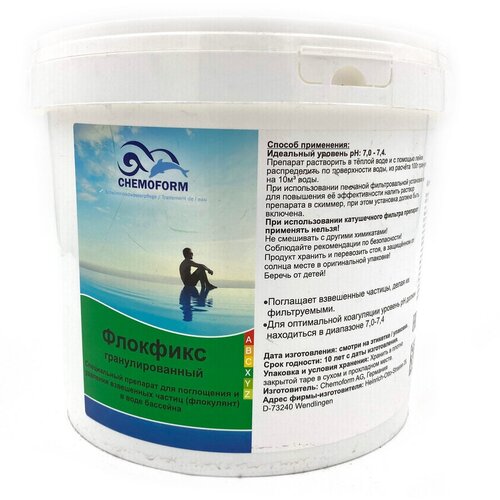 Chemoform Флокфикс гранулированный. Флокулянт для поглощения и удаления взвешенных частиц в воде бассейна, 5 кг, цена - за 1 шт
