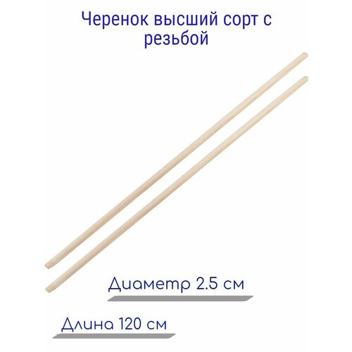 Набор черенков 2шт, высший сорт, диаметр 2.5 см с резьбой - для использования в качестве основы для лопат, грабель, швабр и другого садового инвентаря
