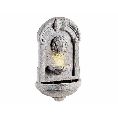Декоративный садовый фонтан настенный величие льва, тёплая белая LED-подсветка, 36х64 см, Kaemingk