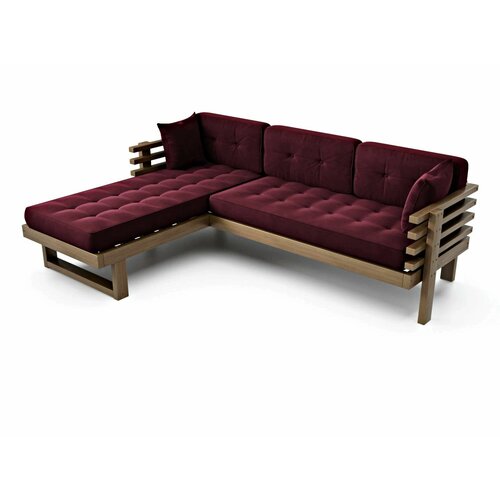 Садовый диван угловой СТОУН-У-С левый бордовый-орех, велюр, деревянный, в гостиную, в прихожую, на балкон, на ножках