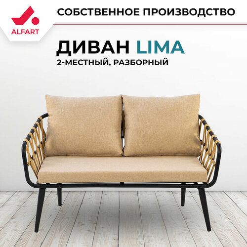 бежевый, черныйСтальной каркас с порошковым покрытием делает диван LIMA устойчивым и надежным. Подлокотники и спинка дивана оплетены вручную уникальным эластичным экоротангом нашего производства, благодаря чему мебель линейки LIMA выглядит стильно в любом помещении или на открытой площадке.