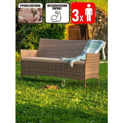 Диван трехместный из искусственного ротанга Киото, для дачи и сада